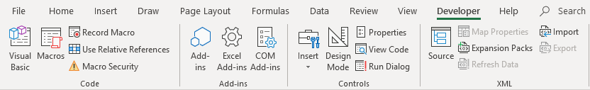 The first thing we need is access to the Developer tab in the Excel ribbon. It’s as simple as ticking a box — you just have to know where to look! We’ll go to File -> Options -> Customize Ribbon. You’ll see a list of the default ribbon tabs that you normally see. Let’s activate the Developer tab by making sure that box is ticked. Click “Ok” to exit this menu.
